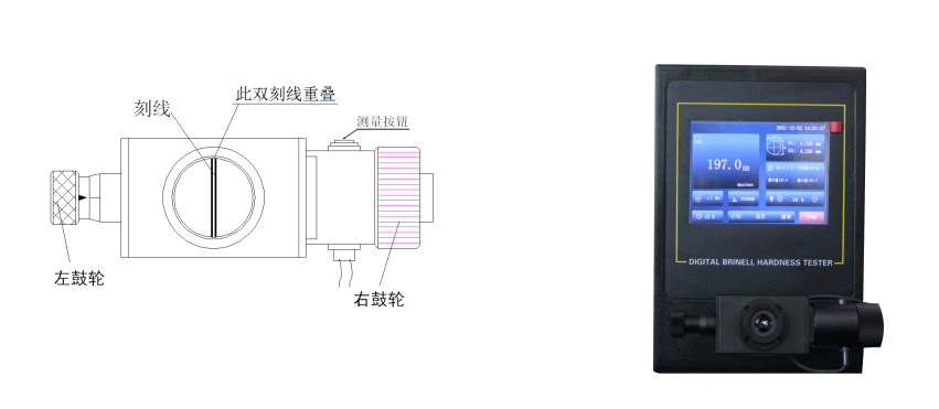 01 各項操作過程和試驗結果的數據均可在LCD大屏幕上顯示。操作時只要測量壓痕按目鏡按鈕,即可自動計算出硬度值并顯示在屏幕上。